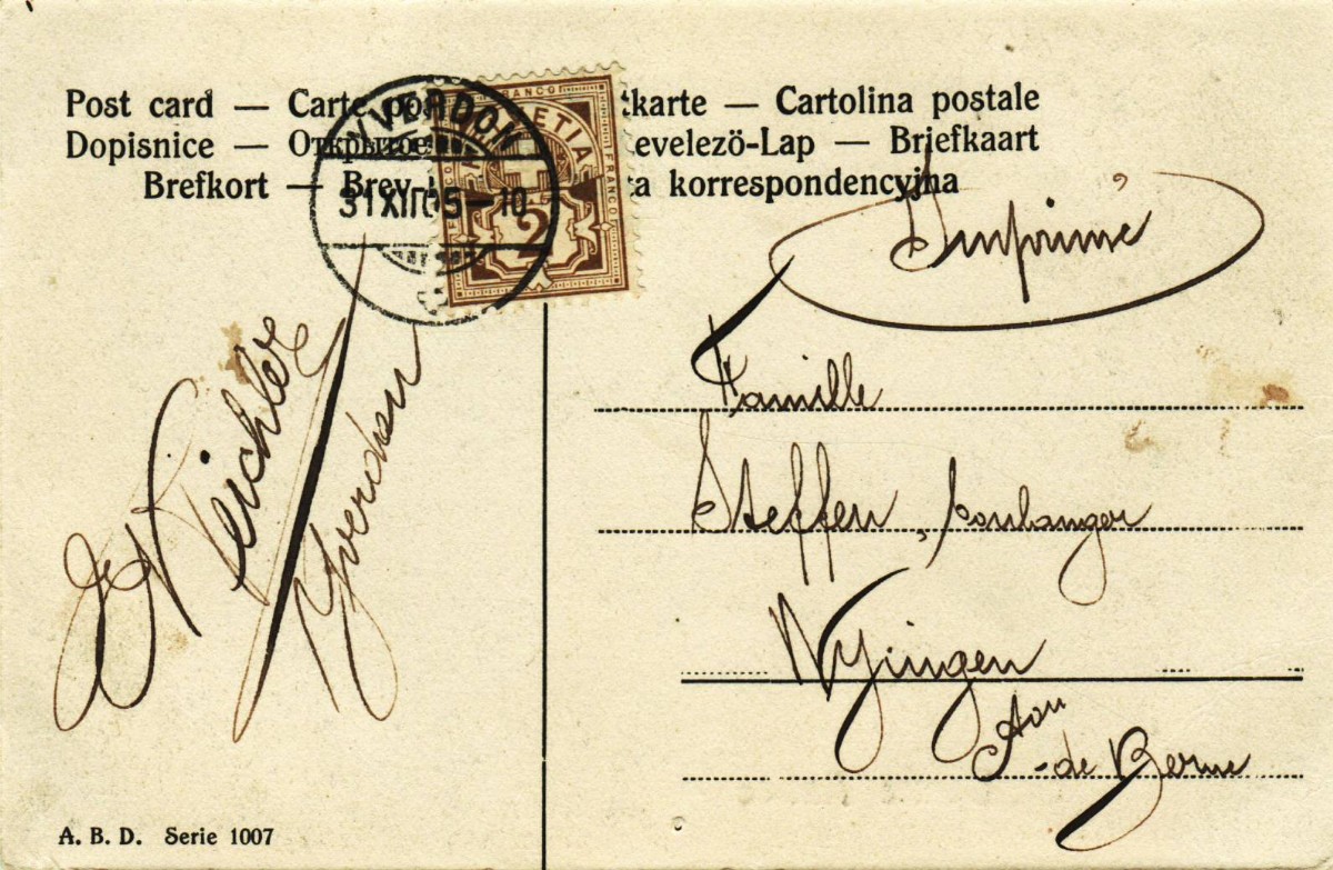 AS: Frankatur “Imprimé” (nur Gruss) Ziffermarke 2 Cts Olivbraun ⦿ YVERDON ✚, 31XII05-10, sauber, Karten Nr: A.B.D. Serie 1007