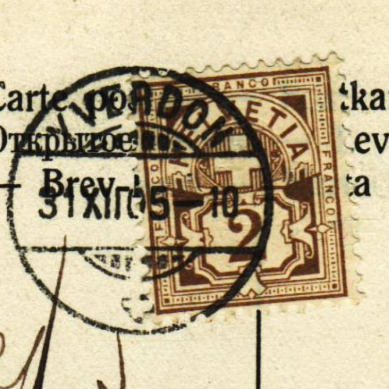 PK, BONNE ANNÉE, YVERDON ⦿ 31.XII.05, ZIFFER 2 C Olivbraun, Z 58 B KZ II: