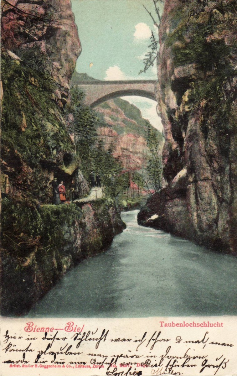 RS: Taubenlochschlucht mit Brücke, Bienne-Biel – Taubenlochschlucht, Artist-Atelier H. Guggenheim Zürich