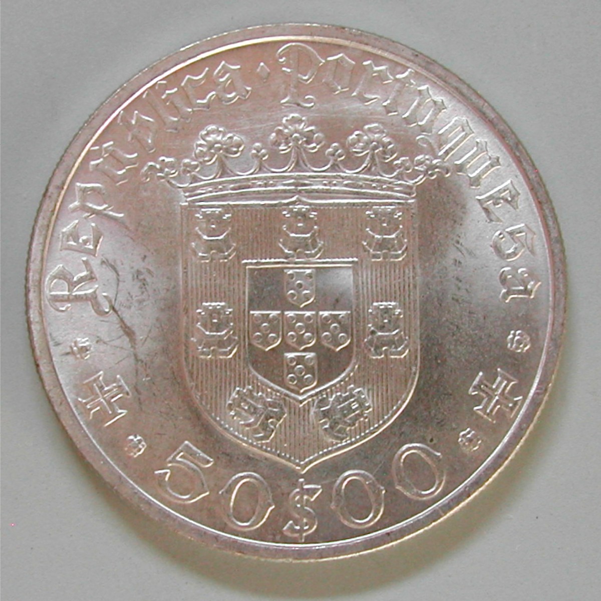 AS: Republica Portuguesa ✿ ✠ ✿ 50 $ 00 ✿ ✠ ✿, gekröntes Wappen im Feld