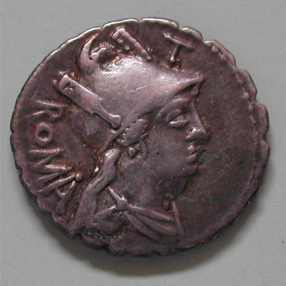 AS: Romabüste nach rechts mit gefederdem Helm, links ROMA, oben T