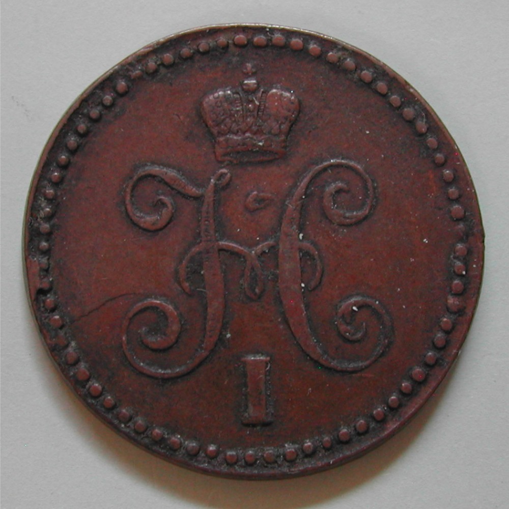 RUSSIA, NIKOLAI I., 1 KOPEKE 1844, Cu, ss