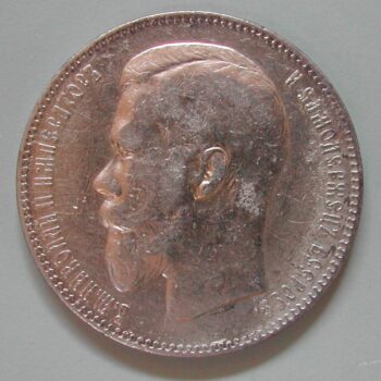 AS: kyrillische Umschrift, Nikolai II. barhäuptig nach links blickend