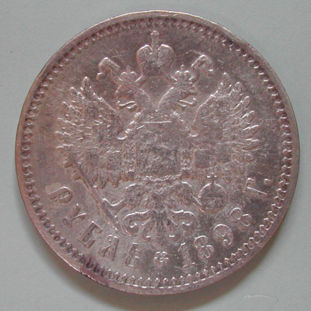 RS: gekrönter Doppeladler mit Wappenschildern, 1 RUBEL 1898 G