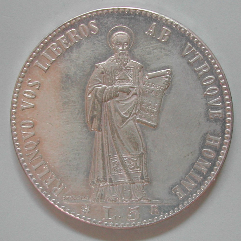 RS: RELINQVU VOS LIBEROS – AB VTROQVE NOMINE, frontal stehender Heiliger, in Ex: ✿ L. 5 R