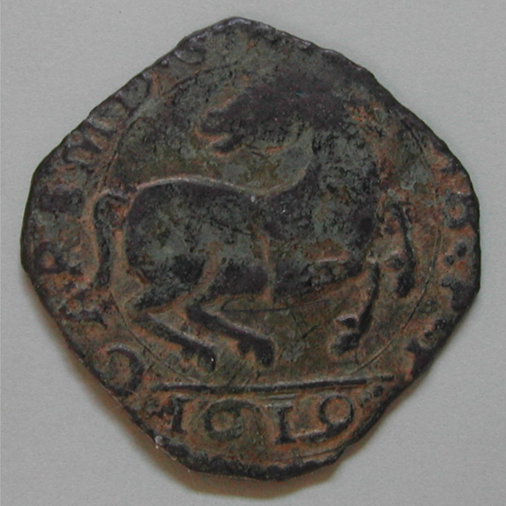 AS: CAR EM…., Teile der Umschrift lesbar, fast quadratischer Schrötling, Pferdnach rechts den Kopf zurück gewendet, in Ex: 1619