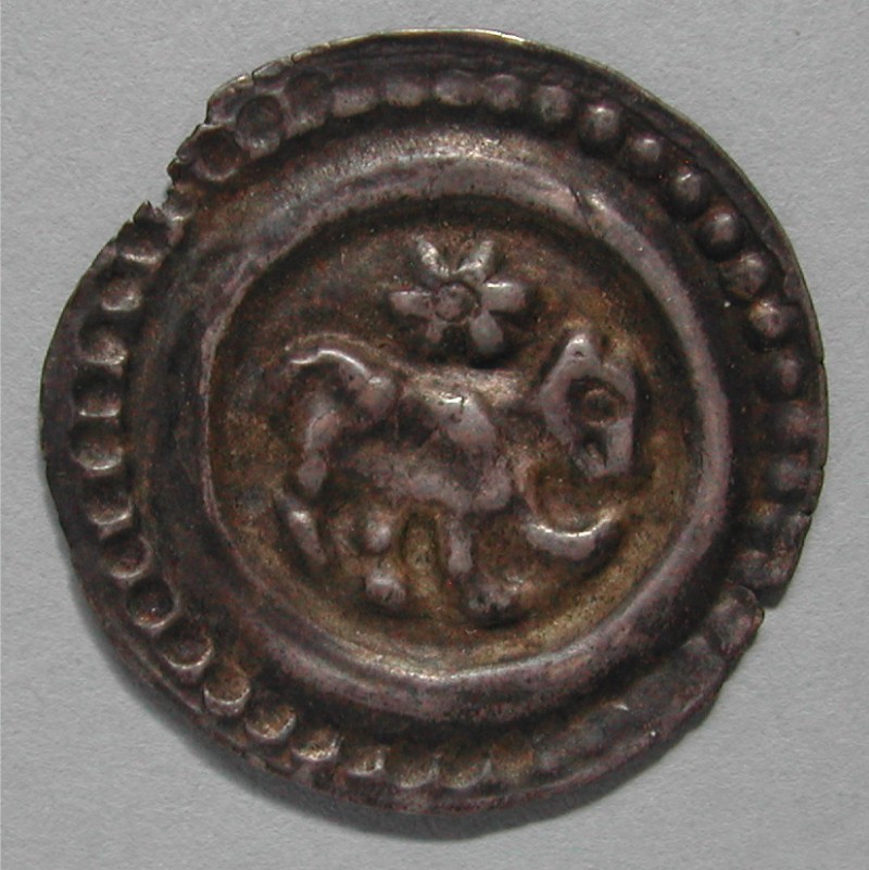 AS: Feiner Perlkreis, im Wulstkreis nach rechts schreitender Bär, darüber Blume/Rosette