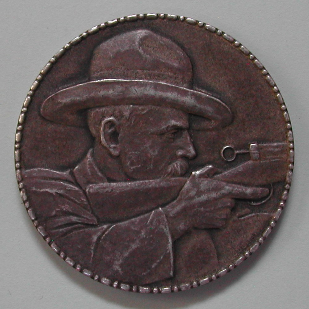 AS: Schütze mit Hut, Karabiner im Anschlag nach rechts, sig: HUGUENIN