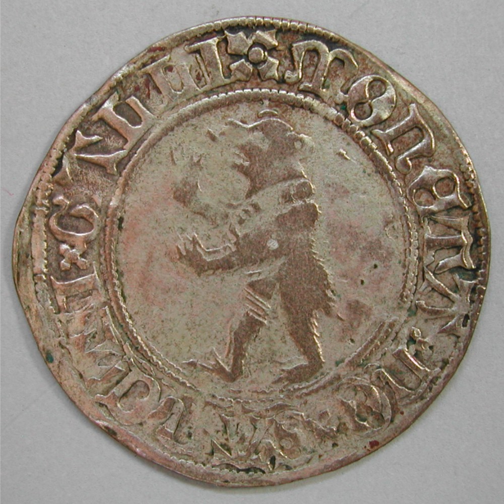 Alte, etwas fleckige Patina, ungereinigt, Doppelprägung in der Schrift