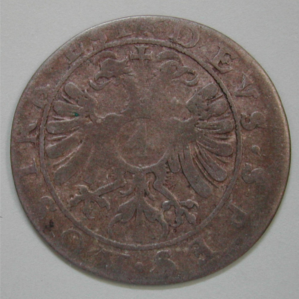 RS: DEVS•SPES•NOSTRA•EST❖, Doppeladler mit ✝︎ zwischen den Köpfen, runder Brustschild mit 4, Perlkreis