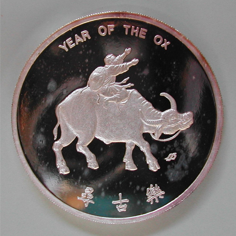 AS: YEAR OF THE OX, Bauer reitet auf einem Büffel nach rechts