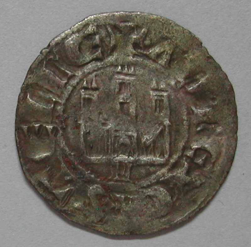 AS: ALF REX CASTELE✠ , Kastell mit 3 Türmen, darunter M (MURCIA), Perlkreis