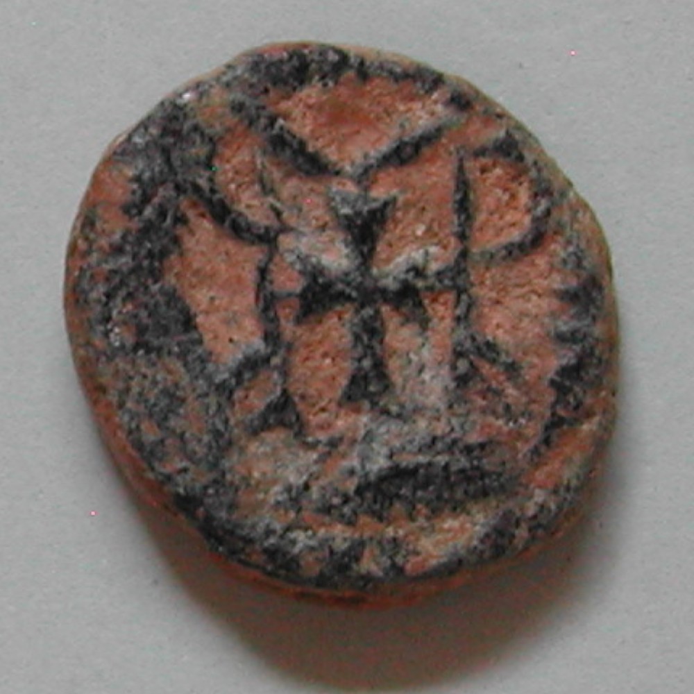 AS: KREUZ zwischen Zeichen (Buchstaben?), Strichelkreis