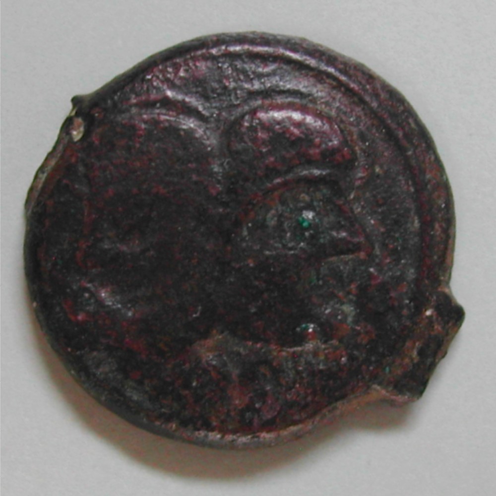 Alte, dunkle bronzebräunliche Patina, ungereinigt, leicht dezentriert