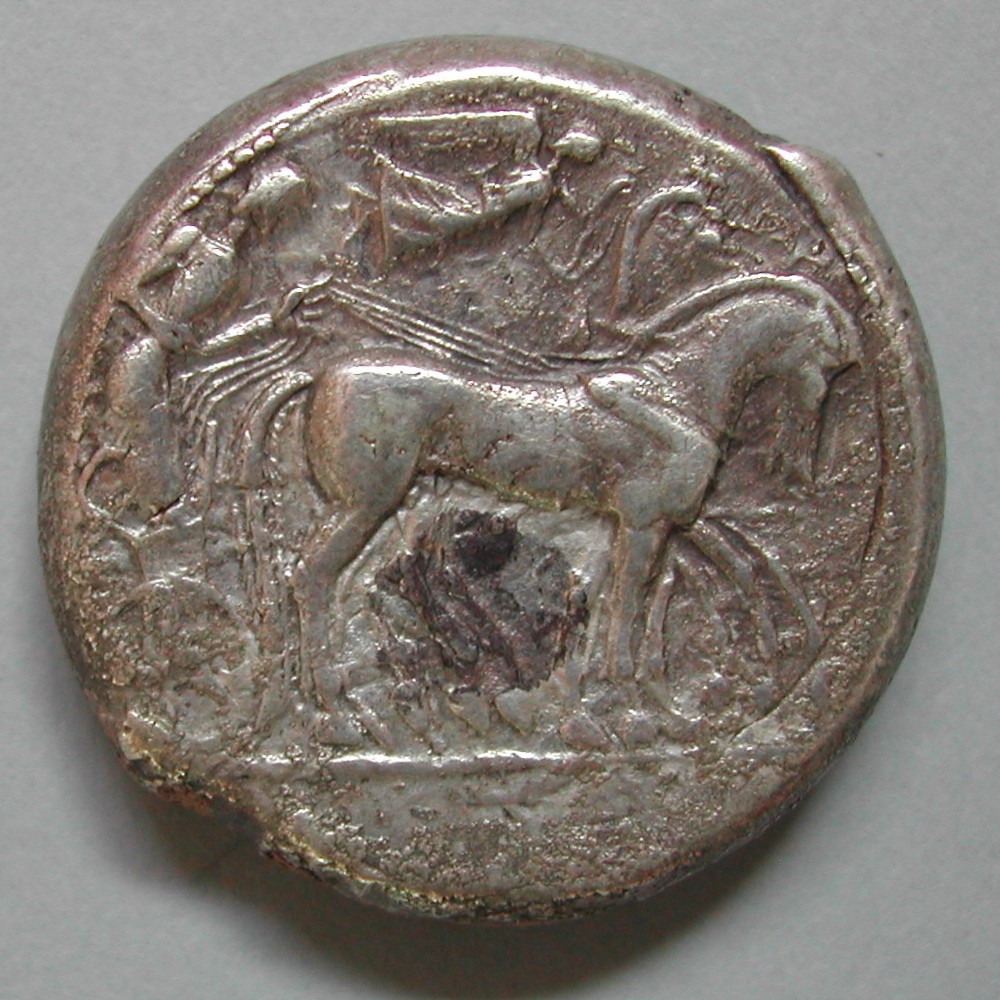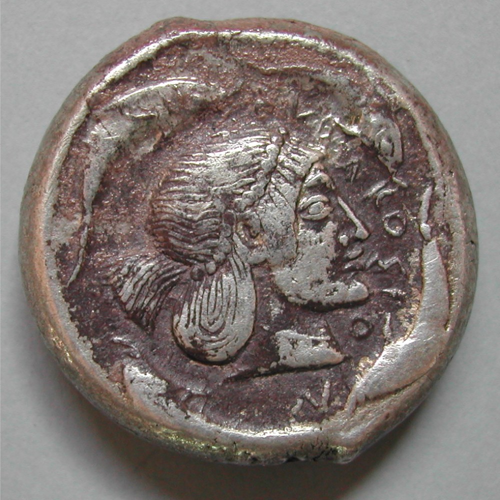 AS: 4 Delphine um Kopf nach rechts (Artemis-Aretusa), SYRAKOSIO – N vor dem Kopf