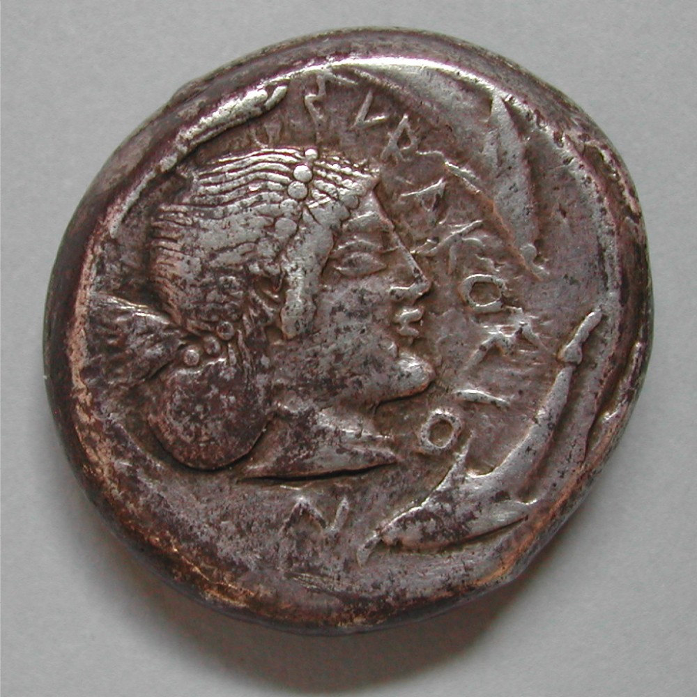 AS: Kopf der ARTHEMIS-ARETHUSA nach rechts, 4 Delphine, SYRAKOSION