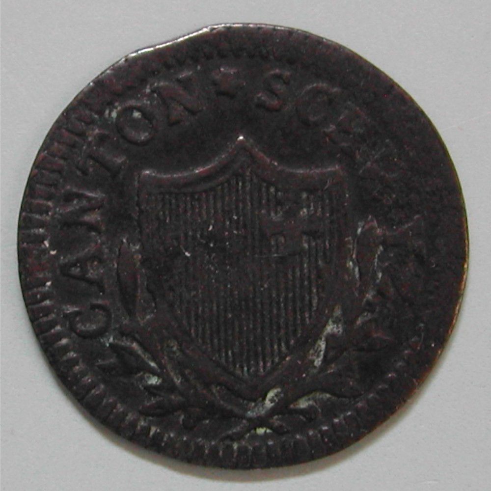 AS: CANTON ✿ SCHWYZ, spitzes Wappen zwischen Lorbeerzweigen