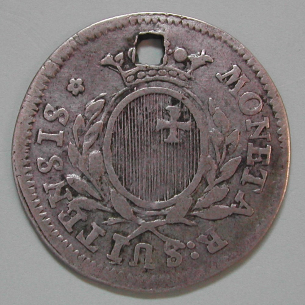 AS: MONETA R : SUITENSIS ✿, gekröntes, ovales Wappen zwischen Lorbeerzweigen