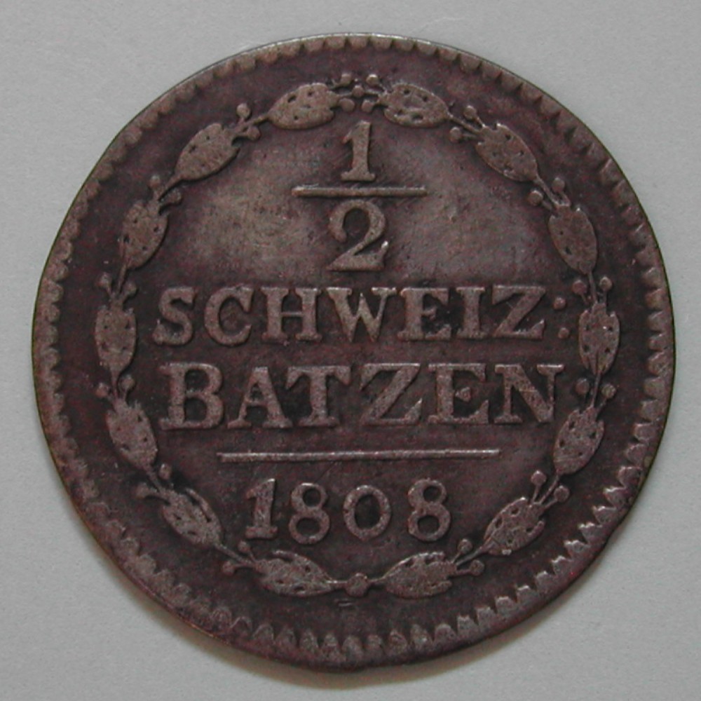 RS: ½ / SCHWEIZ: / BATZEN / — / 1808 im Lorbeerkranz