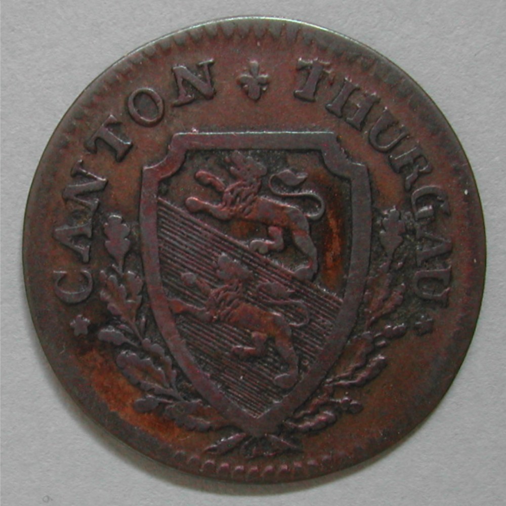 AS: ★ CANTON ✤ THURGAU ★, spitzes Wappen zwischen Eichenlaubzweigen
