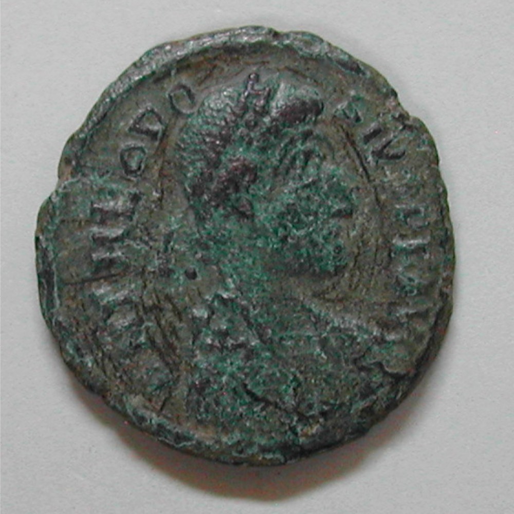 AS: D D THEODOSIVS PF AVG, belorbeerte Büste nach rechts