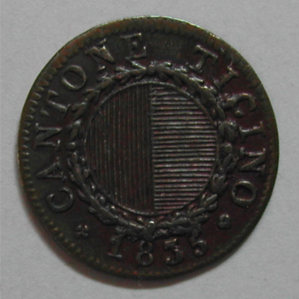 AS: CANTONE TICINO ❀ 1835 ❀, rundes Wappen im Blatterkranz