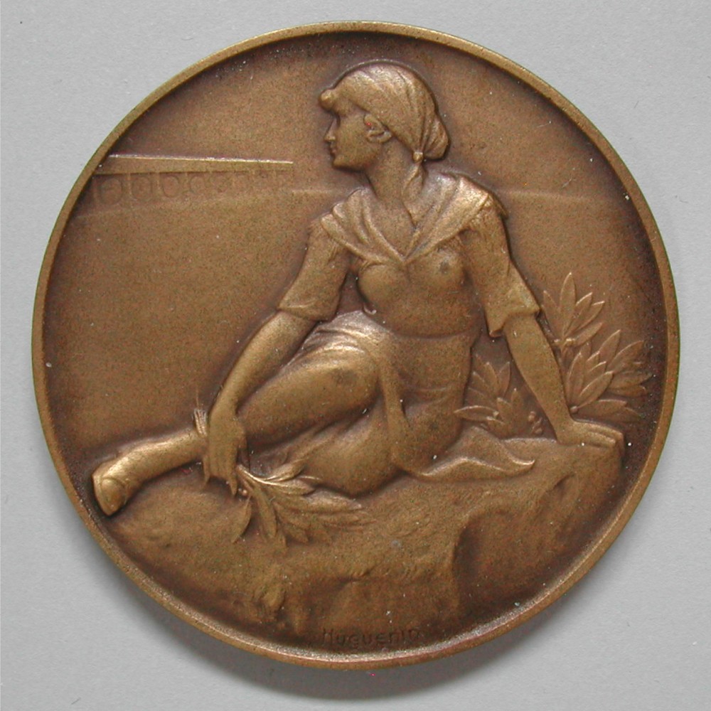 RS: sitzendes Mädchen auf Felsen mit Lorbeerzweig, sig: HUGUENIN