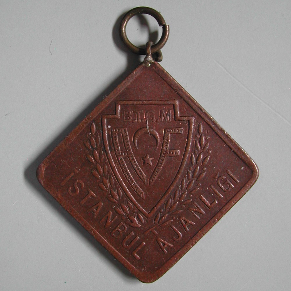 AS: B.T.G.M. in Schild mit Halbmond + Stern zwische A – F und Lorbeerzweigen, ISTANBUL AJANJIǦI