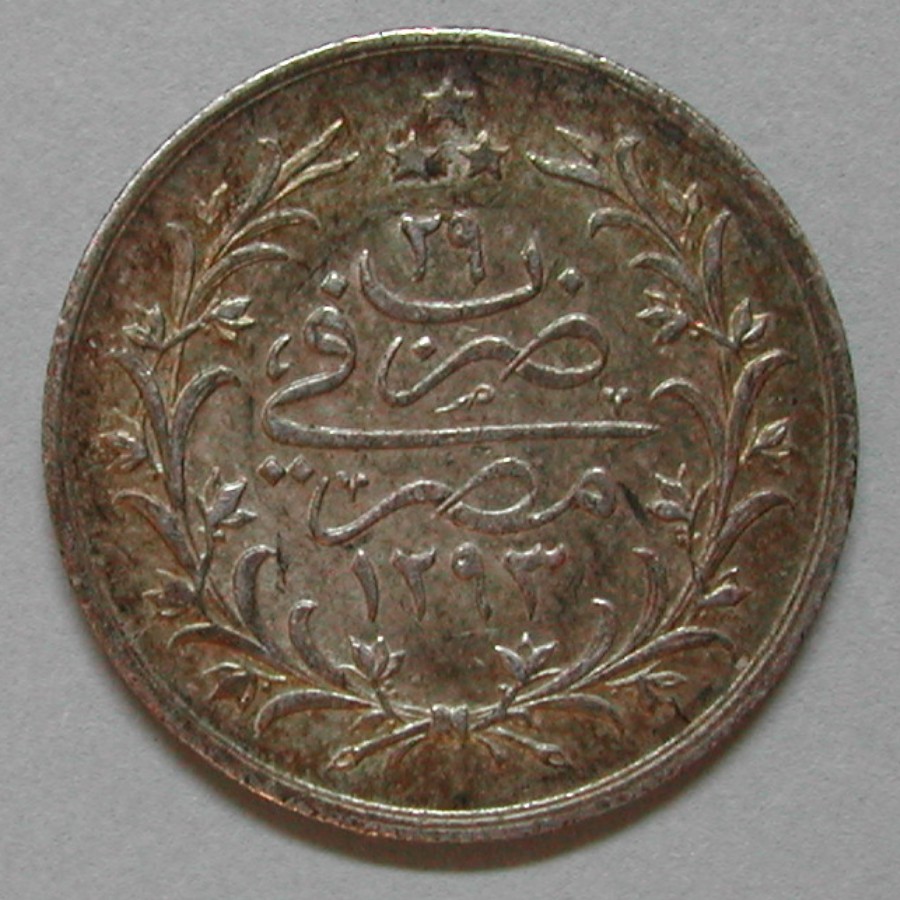 RS: 3 *, 29 (Prägejahr) / duribe fi misr (geschlagen in Aegypten) 1293, links und rechts Blumenzweige