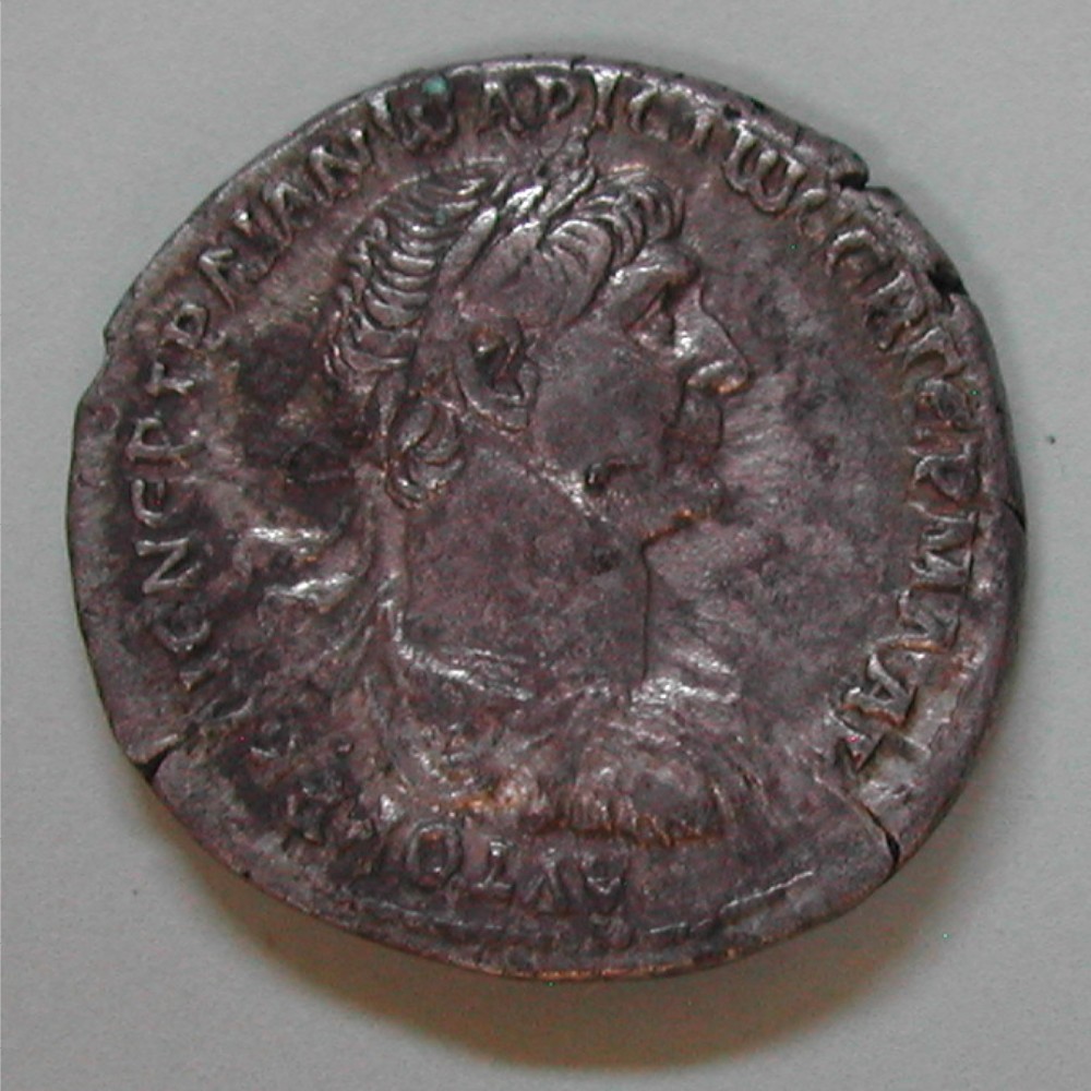 Alte, etwas fleckige Patina, gut zentriertes Stück
