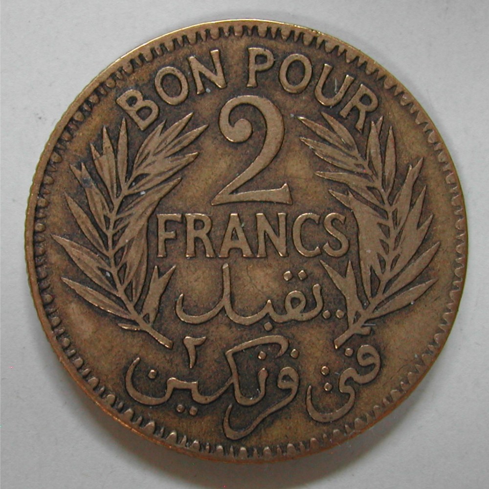 RS: BON POUR – Arabische Bezeichnung, 2 / FRANCS zwischen Palmzweigen