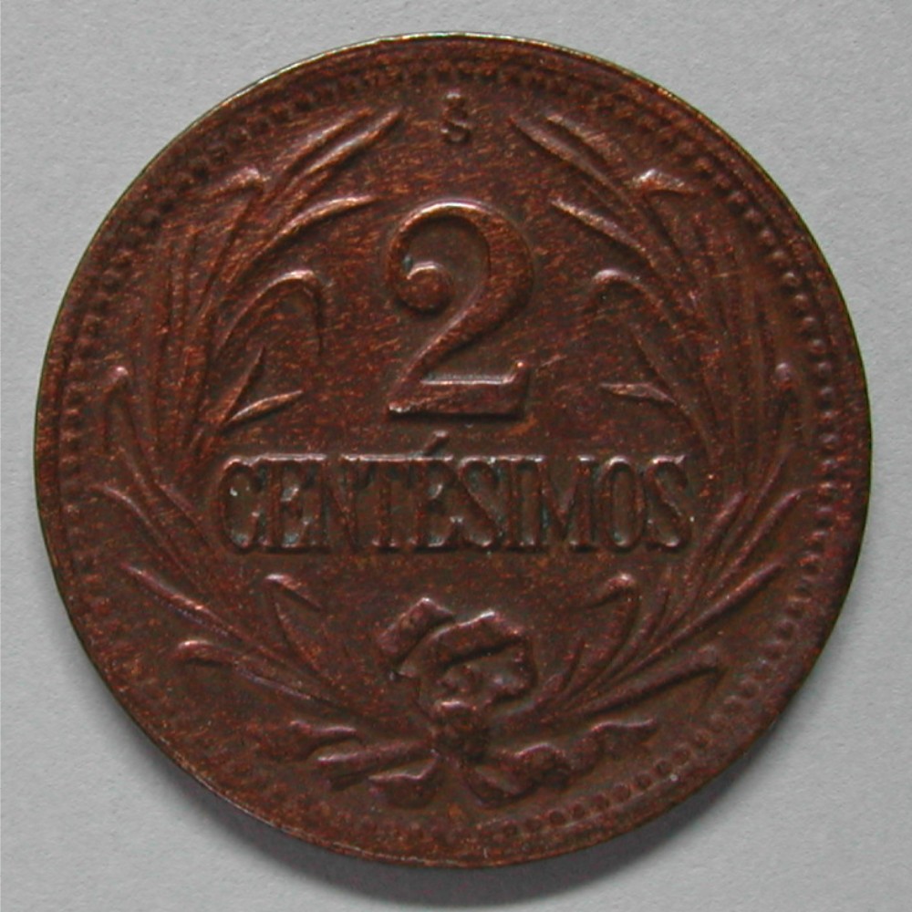 RS: S° / 2 /CENTÉSIMOS , zwischen Schilfblättern, Zuckerrohr?