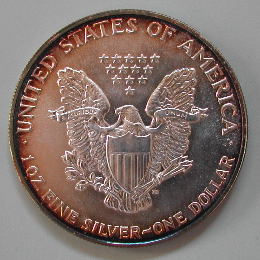 AS: UNITED STATES OF AMERICA, Adler frontal mit geöffneten Schwingen Wappen auf der Brust, E PLURIBUS / UNUM, unten: 1 OZ FINE SILVER-ONE DOLLAR