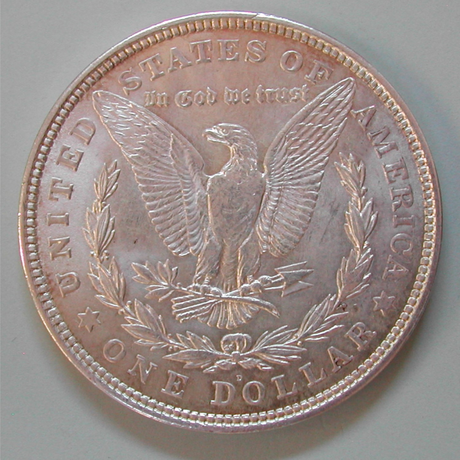 AS: UNITED STATES OF AMERICA ✶ ONE DOLLAR ✶, oben: IN GOD WE TRUST, Adler in Kranz, darunter D