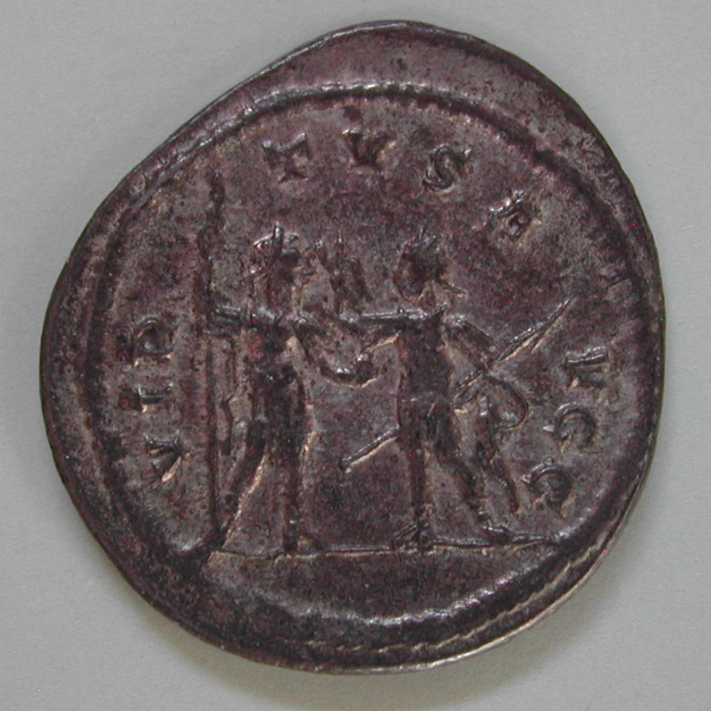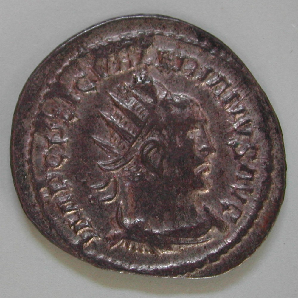 AS: IMP C P LIC VALERIANVS AVG, Kopf mit Strahlenkrone nach rechts