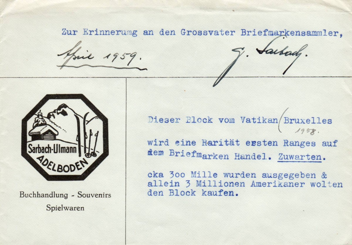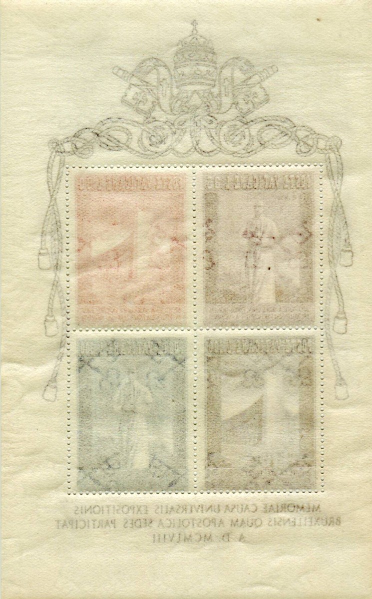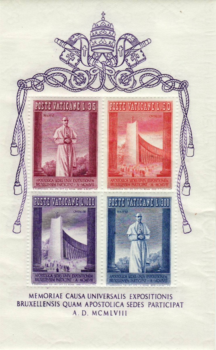 Block mit 4 Werten, PIUS XII und MEMORIAL zur Weltausstellung in Bruxelles 1958
