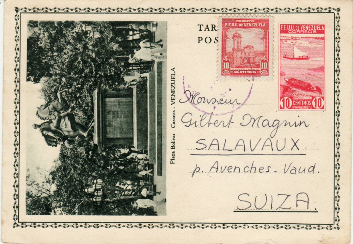 VENEZUELA, GS BILDPOSTKARTE mit Zusatzfrankatur nach CH 1947, SALAVAUX