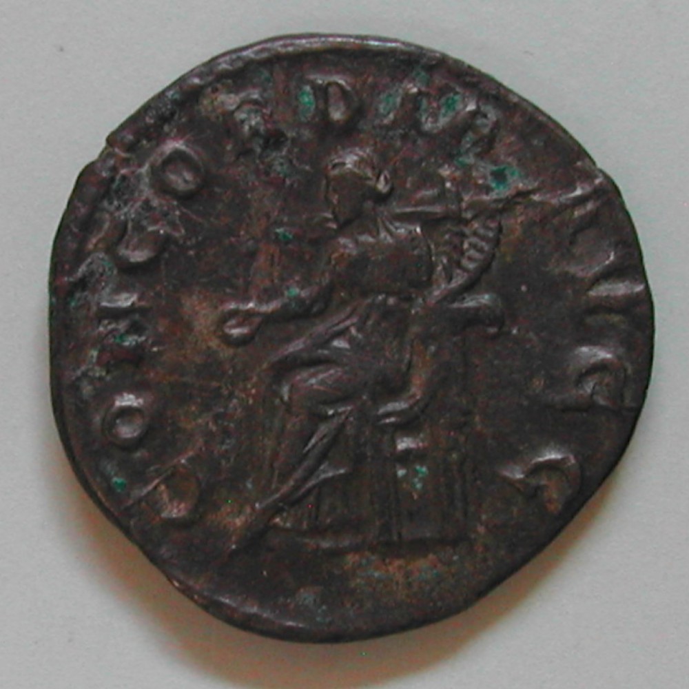 RS: CONCORDIA AVGG, Concordia nach links sitzend mit Opferschale und Füllhorn (?)