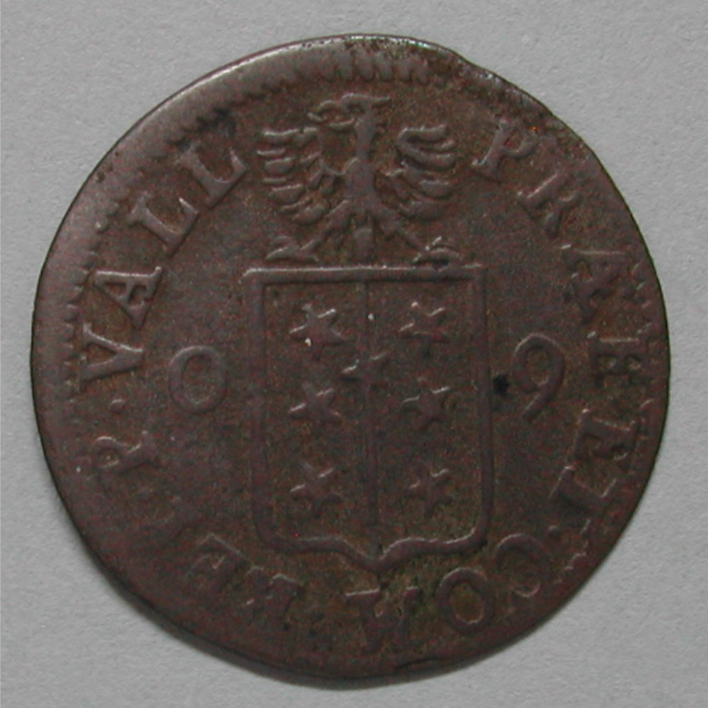 RA: PRÆF•ET•COM•REI•P•VALL, Adler über Wappen, links 0 rechts 9