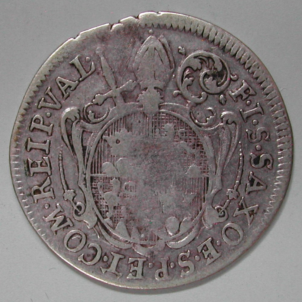 AS: F•I•S•SAXO•E•S•P•ET•COM•REIP•VAL•, mitriertes, ovales Wappen zwischenZweigen