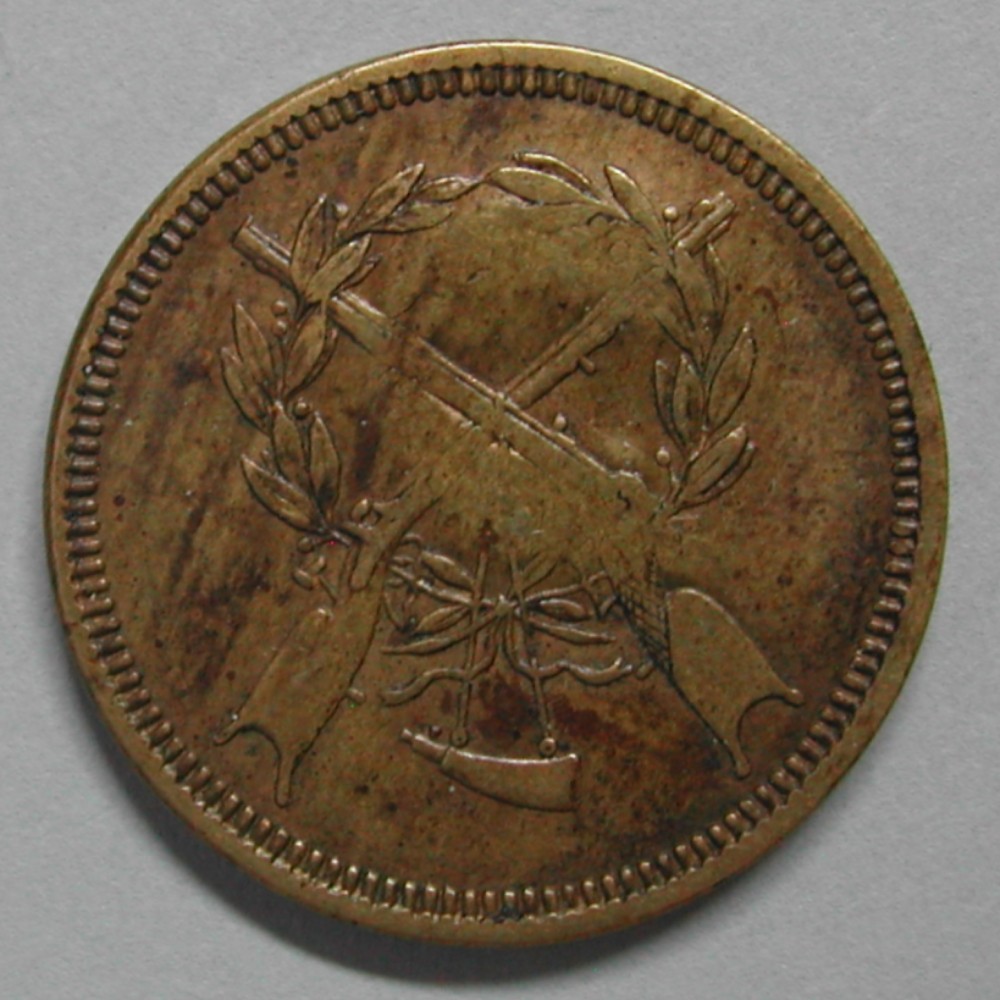 RS: 2 gekreuzte Karabiner und ein Pulverhorn vor Lorbeerkranz
