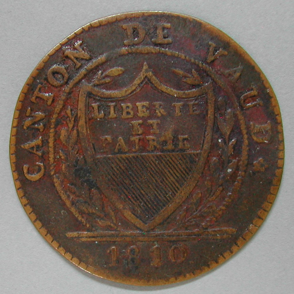 AS: CANTON DE VAUD, Spatenwappen zwischen Lorbeerzweigen, in Ex: 1810