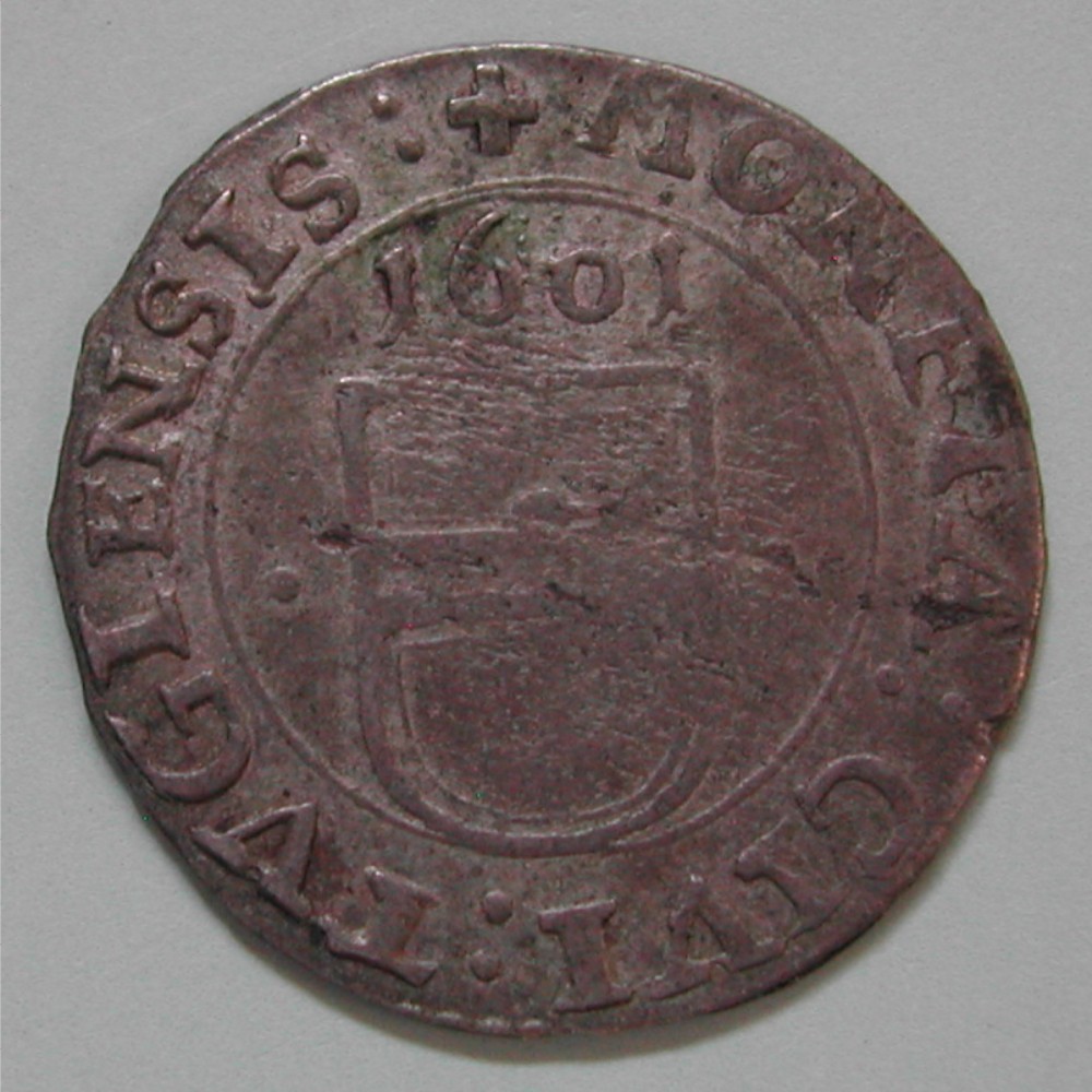 AS: MONETA:CIVI:TVGIENSIS:✚, 1601 über Wappen in feinem Kreis