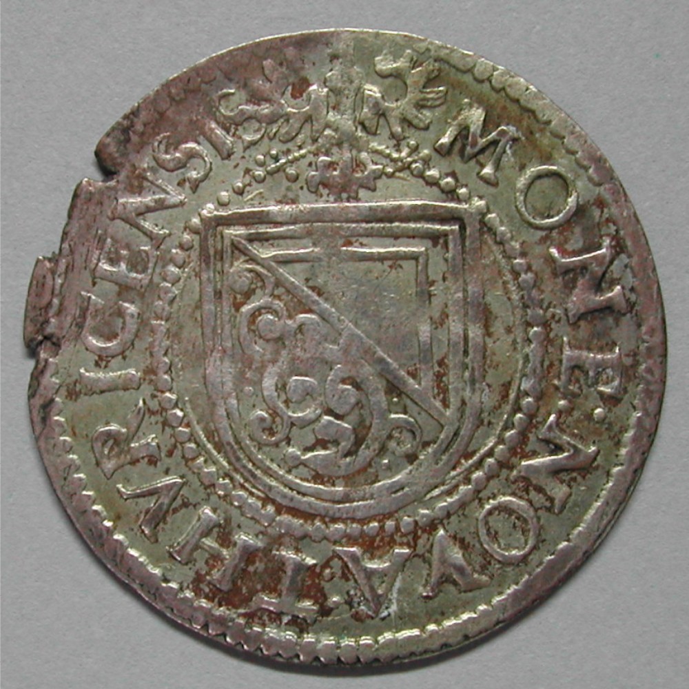 AS: MONE : NOVA : THVRICENSIS, rundes Wappen im Perlkreis, darüber Adler, Kopf nach links