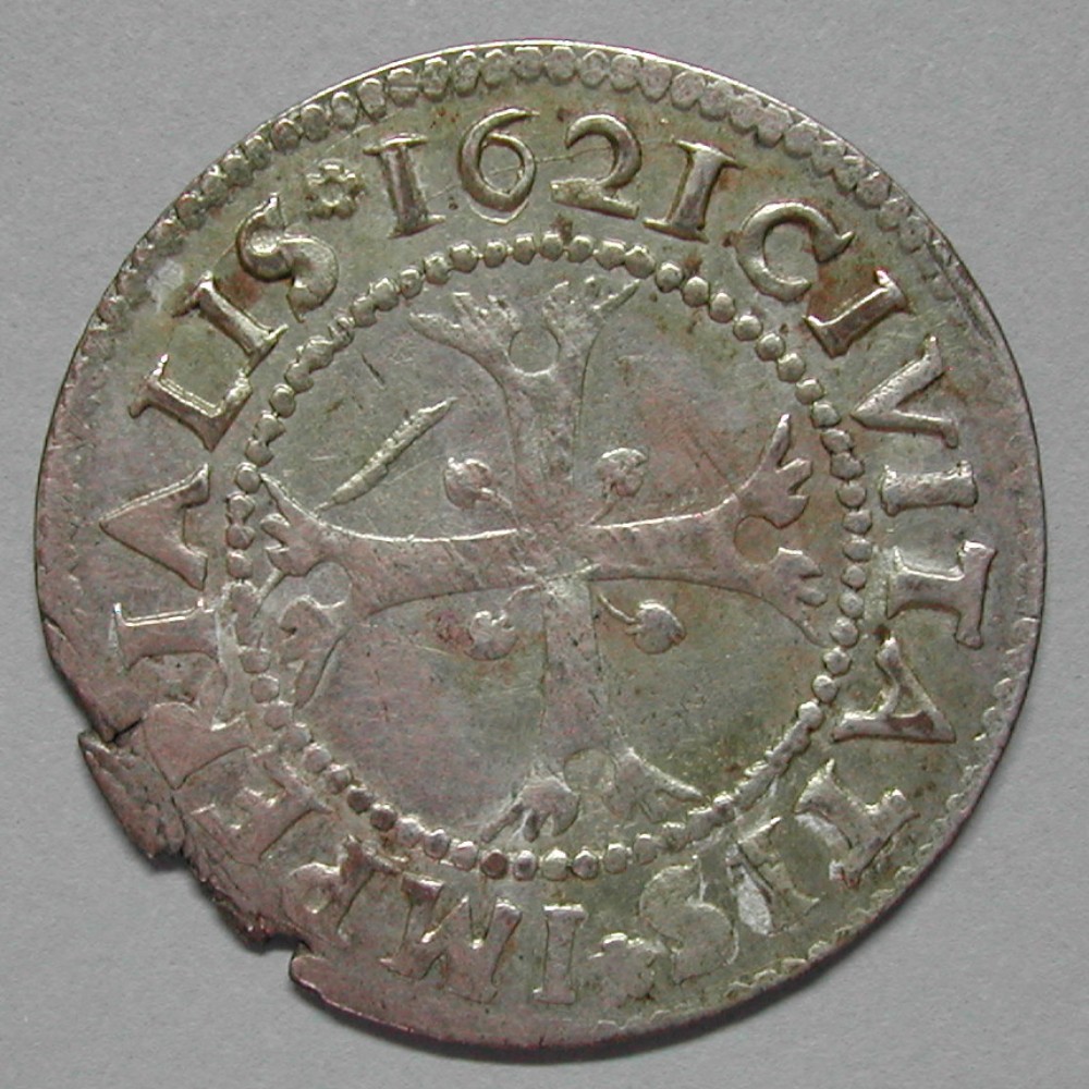 RS: CIVITATIS✿IMPERIALIS✿1621 , Kreuz mit 4 Blättern in den Winkeln im Perlkreis