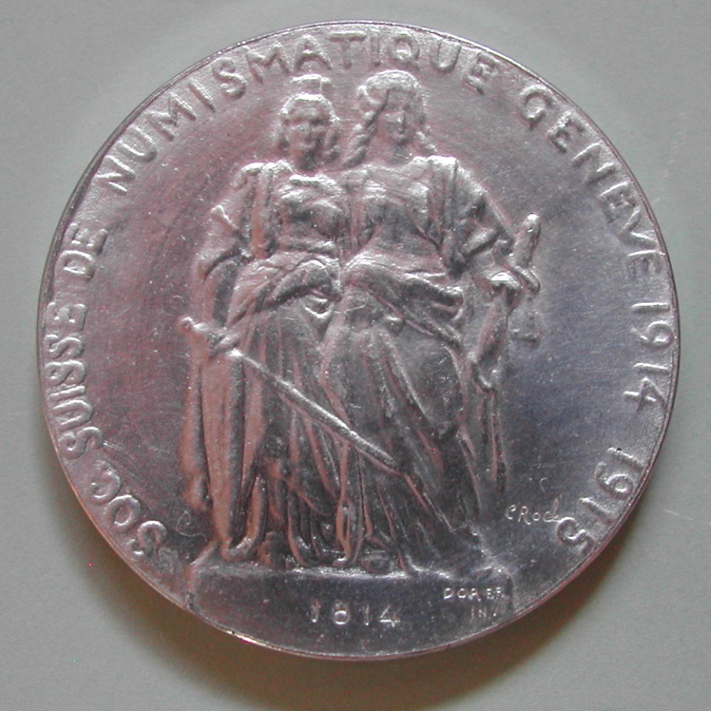 RS: SOC.SUISSE DE NUMISMATIQUE GENEVE 1914 1915, 2frontal stehende Frauen, in Ex: 1814, sig C.Roch + unleserliche DOR?