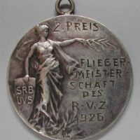 AS: Weibliche Figur hält Schild: SRB / UVS, Gravur: 2. PREIS / FLIEGER / MEISTER / SCJAFT / DES / RVZ / 1926, sig: Huguenin, RVZ = Zürich