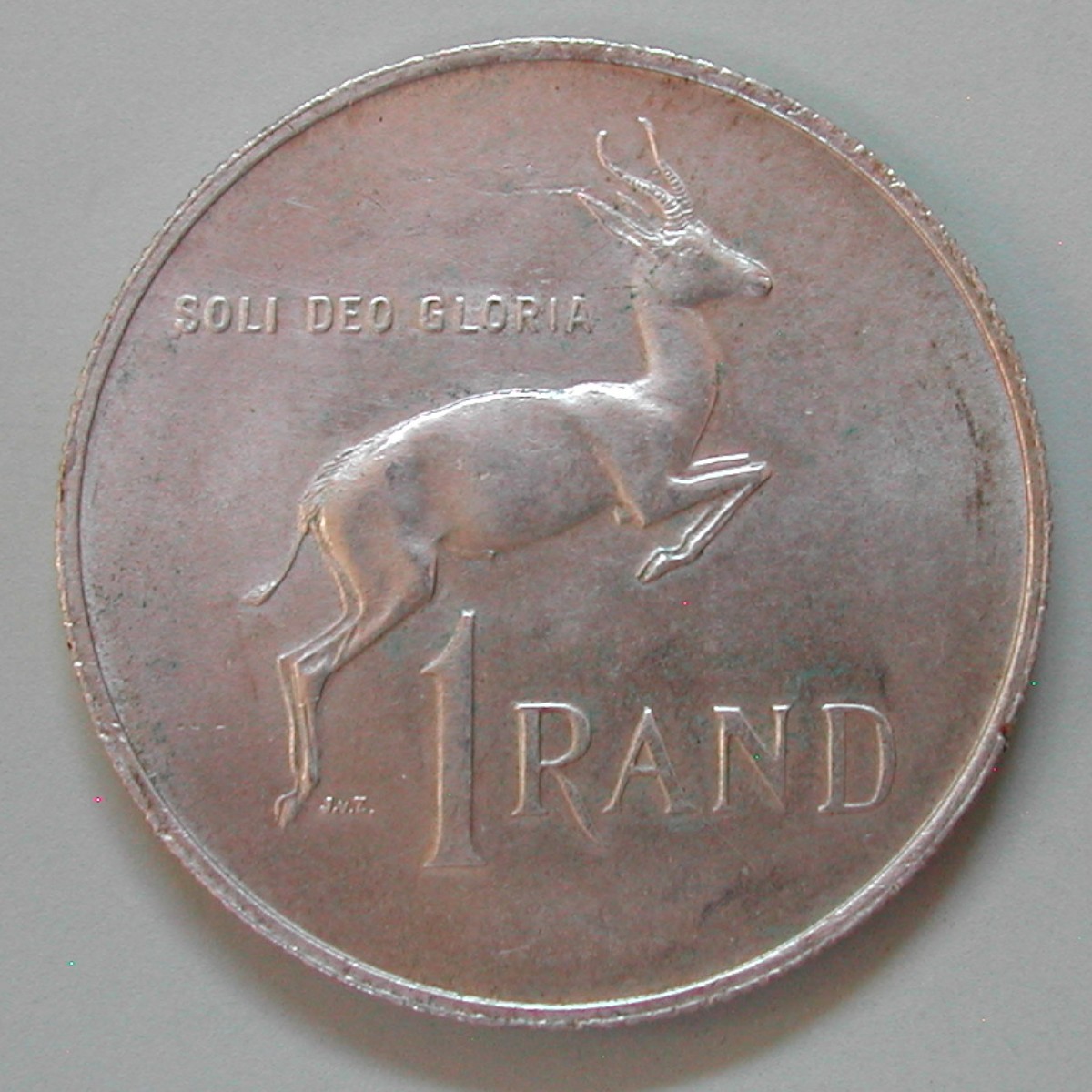 RS: SOLI DEO GLORIA, Springbok nach rechts über 1 RAND hinweg springend