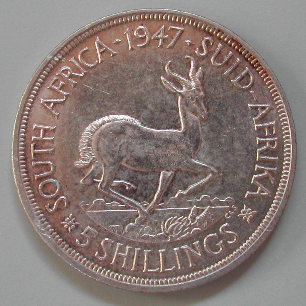 RS: SOUTH AFRICA – 1947 – SUID AFRIKA + 5 SHILLINGS +, Springbock nach rechts