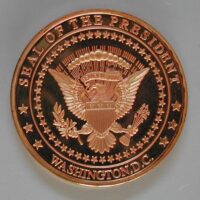 AS: SEAL OF THE PRESIDENT ✭✭✭ WASHINGTON, D.C. ✭✭✭, Strahlen, Wolken, Band: E PLURIBUS UNUM, Adler mit Wappen, Olivenzweigen und Pfeilen in einem Sternenkreis